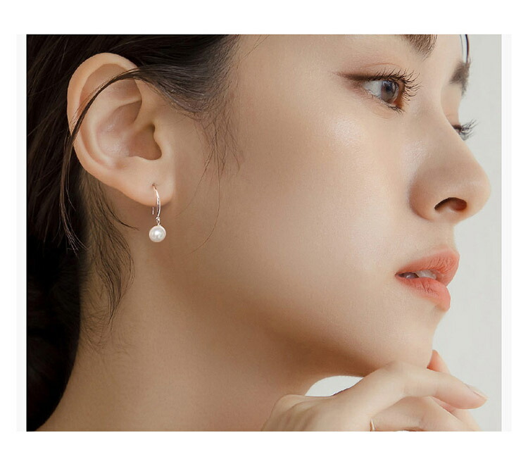 10mmのパールが一粒輝くシンプルな女性らしい雰囲気のピアス、どなたでも似合います。